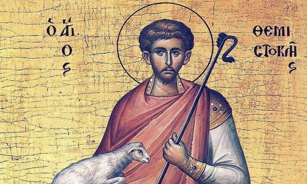 Ο άγιος Θεμιστοκλής καταγόταν από τα Μύρα της Λυκίας και έζησε την εποχή του αυτοκράτορα Δεκίου. Ήταν βοσκός στο επάγγελμα.