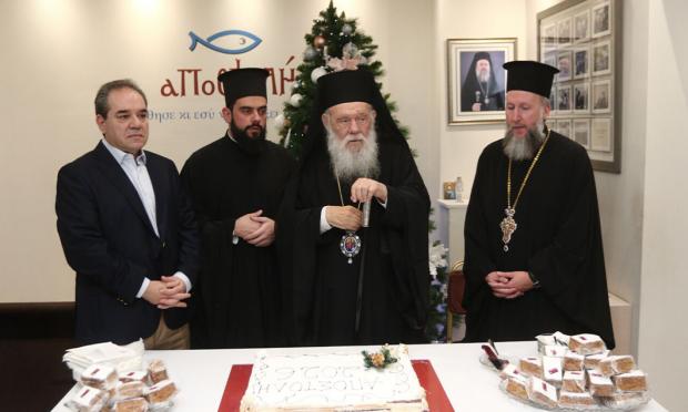 Την πρωτοχρονιάτικη βασιλόπιτα του Φιλανθρωπικού Οργανισμού «Αποστολή», έκοψε το μεσημέρι ο αρχιεπίσκοπος Αθηνών και πάσης Ελλάδος Ιερώνυμος, ο οποίος συνοδευόταν από τον γενικό αρχιερατικό επίτροπο της Ιεράς Αρχιεπισκοπής Αθηνών, πρωτοπρεσβύτερο π. Εμμανουήλ Παπαμικρούλη και τον αρχιδιάκονο π. Δημήτριο Φωκιανό.