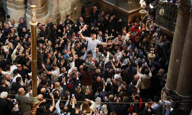 Στα Ιεροσόλυμα το Άγιο Φως: τελετή στον Ναός της Αναστάσεως με περιορισμένη παρουσία πιστών – άφιξη στην Ελλάδα το απόγευμα