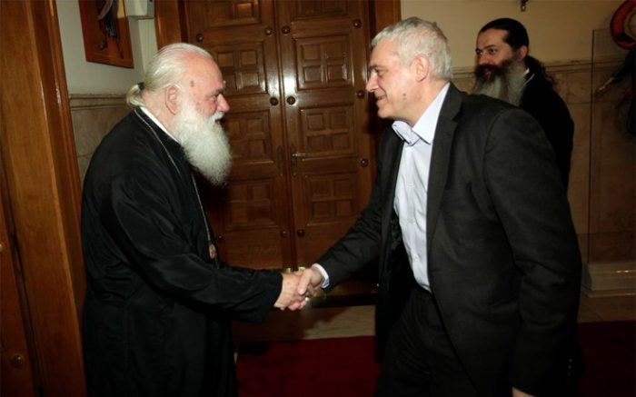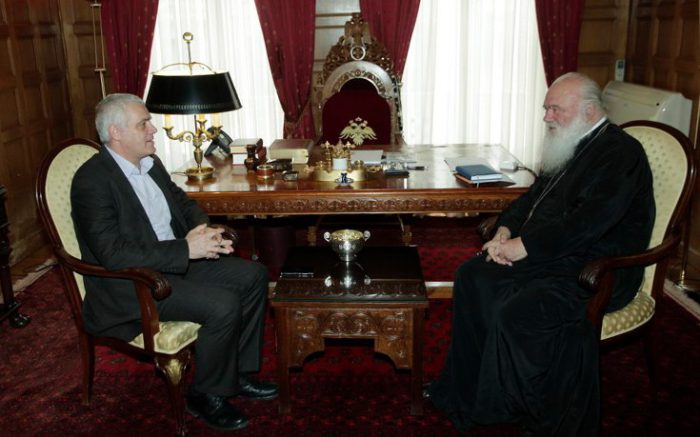 Στην αξιοποίηση εκτάσεων της εκκλησίας που δεν χρησιμοποιούνται αναφέρθηκαν σήμερα το πρωί κατά τη συνάντηση που είχαν στην Αρχιεπισκοπή ο αναπληρωτής Υπουργός Περιβάλλοντος Γιάννης Τσιρώνης και ο Αρχιεπίσκοπος Αθηνών και πάσης Ελλάδος κ. Ιερώνυμος.
