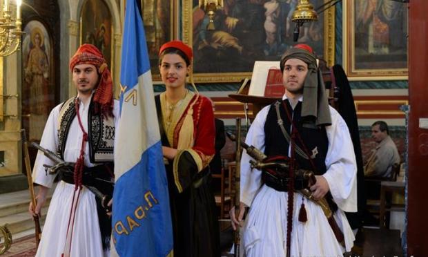 Στὸ τέλος τῆς Θείας Λειτουργίας τὸ ἐκκλησίασμα μὲ τὴν παρότρυνση τοῦ Σεβασμιωτάτου ἔψαλλε συγκινητικὰ τὸν Ἐθνικὸ Ὓμνο.