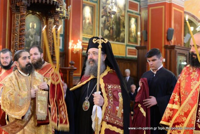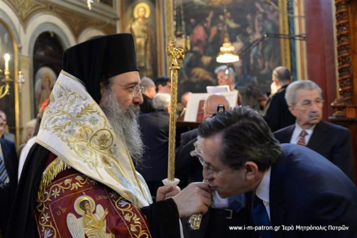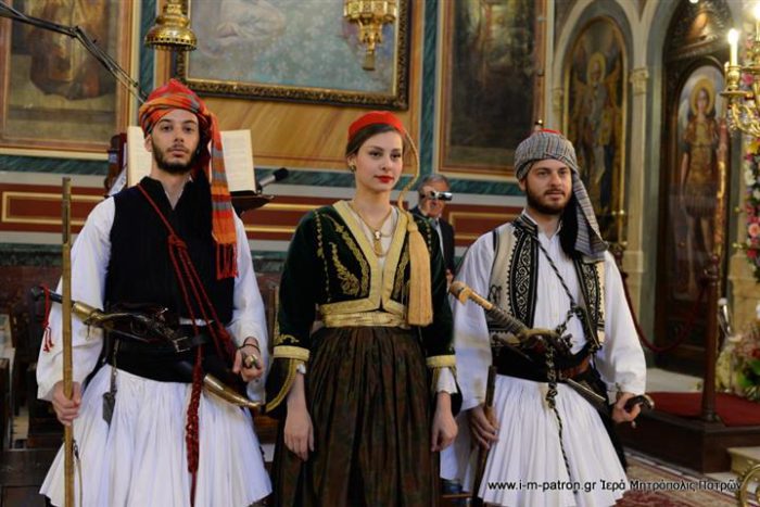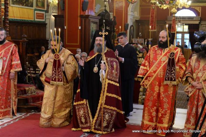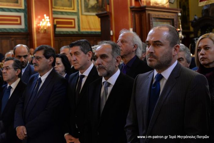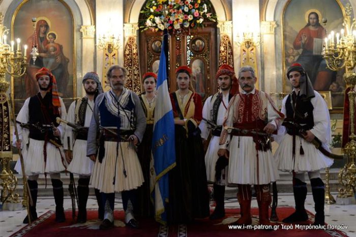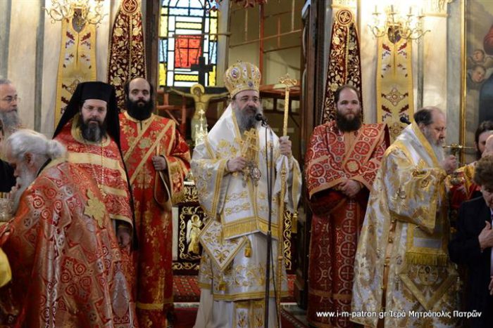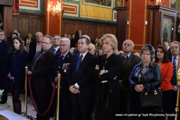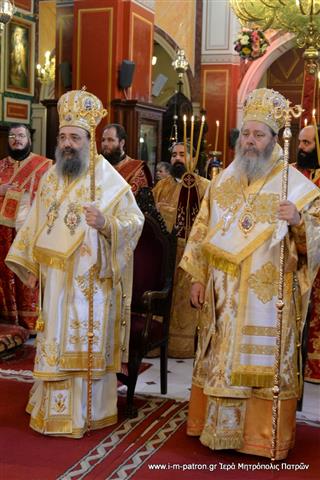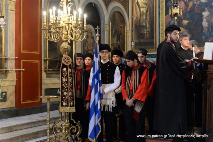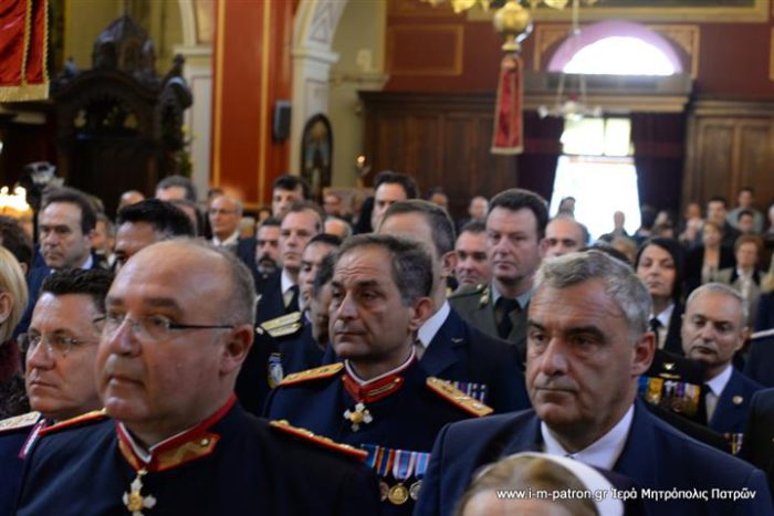 - Μετά τό τέλος τῆς Θείας Λειτουργίας, ἐτελέσθη ἡ Ἐπίσημη Δοξολογία ἐπί τῇ Ἒθνικῇ Ἐπετείῳ τῆς 25ης Μαρτίου 1821, ὑπό τοῦ Σεβασμιωτάτου Μητροπολίτου Πατρῶν κ.κ. Χρυσοστόμου, συγχοροστατοῦντος τοῦ Θεοφιλεστάτου Ἐπισκόπου Κερνίτσης κ. Χρυσάνθου, παρουσίᾳ τοῦ Ἐκπροσώπου τῆς Κυβερνήσεως, κ. Ἠλία Ξανθάκου, Γενικοῦ Γραμματέως τοῦ Ὑπουργείου Οἰκονομίας καί τῶν λοιπῶν Πολιτικῶν, Ἀστυνομικῶν καί Στρατιωτικῶν Ἀρχῶν τῆς πόλεως καί πλήθους Λαοῦ.