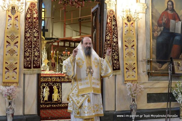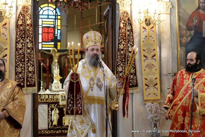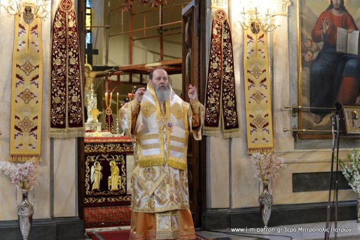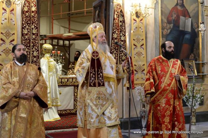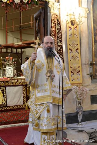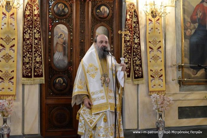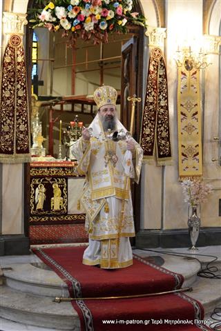 Τὸν θεῖο λόγο στὸν κατάμεστο ἀπὸ πιστοὺς Ἱερὸ Ναό, ἐκήρυξε ὁ Σεβασμιώτατος Μητροπολίτης Πατρῶν κ.κ. Χρυσόστομος, ὁ ὁποῖος ἀνεφέρθη στοὺς δογματικοὺς ὅρους Ἀειπάρθενος καὶ Θεοτόκος στὸ πρῶτο μέρος καὶ στὸ δεύτερο μέρος στὴν θαυμαστὴ σχέση τῆς Παναγίας μὲ τὸν Ἑλληνικὸ Λαὸ σὲ χρόνια δύσκολα ὅπως ἦταν τὰ 400 χρόνια τῆς πικρῆς σκλαβιᾶς καὶ τῆς ἀπελευθέρωσης ἀπὸ τὸν Τουρκικὸ ζυγό καί κατέληξε μέ τά λόγια τοῦ Κολοκοτρώνη: «Παναγιά μου βοήθα καί τούτη τή φορά τήν Ἑλλάδα».