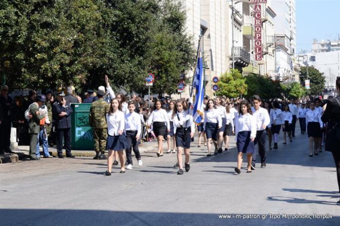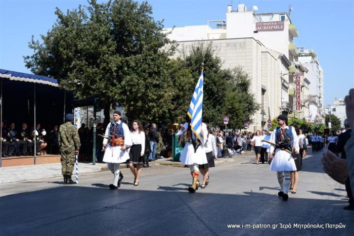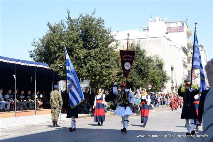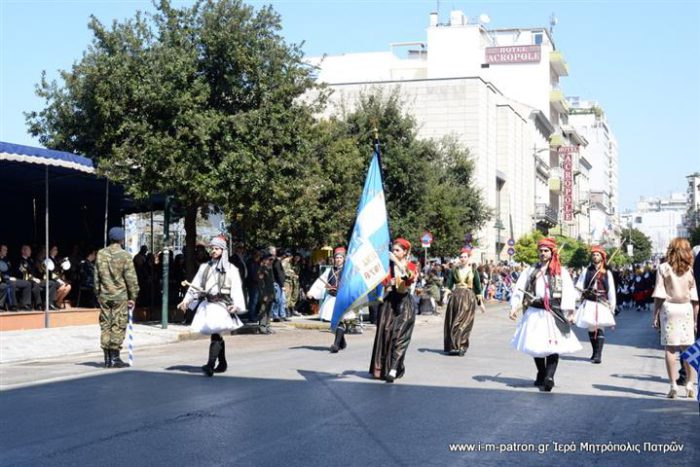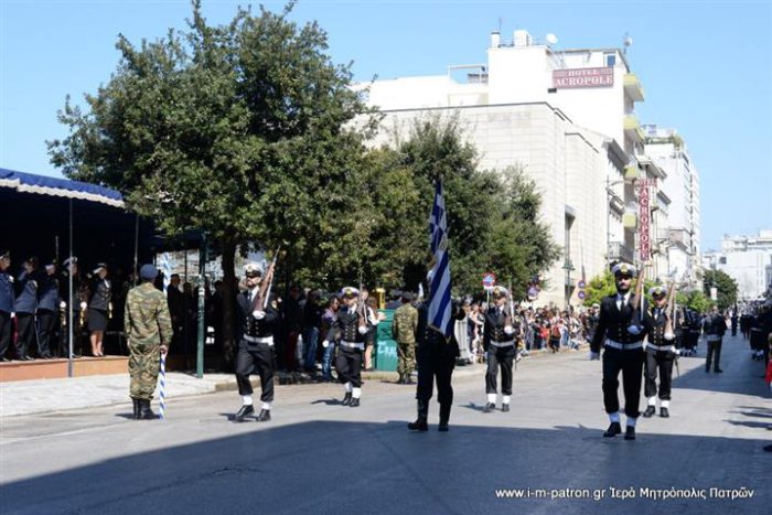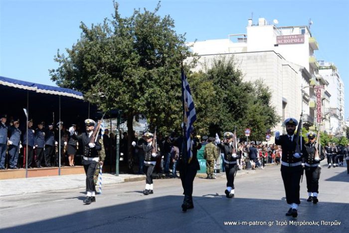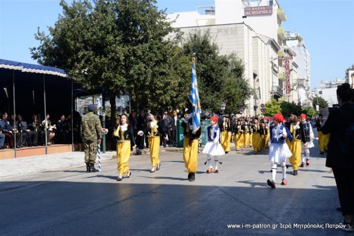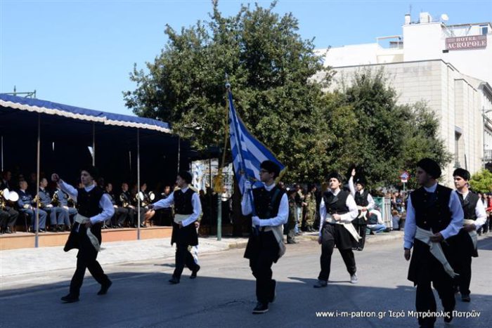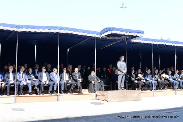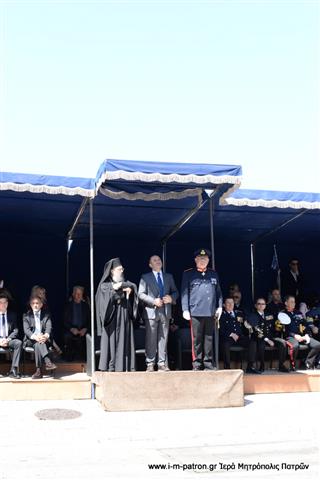 - Ἐν συνεχείᾳ ὁ Σεβασμιώτος παρηκολούθησε καί εὐλόγησε τήν παρέλαση τῶν Πολιτικῶν καί Στρατιωτικῶν τμημάτων.