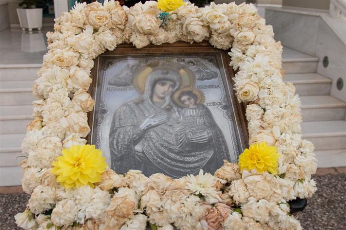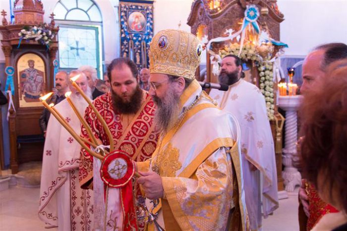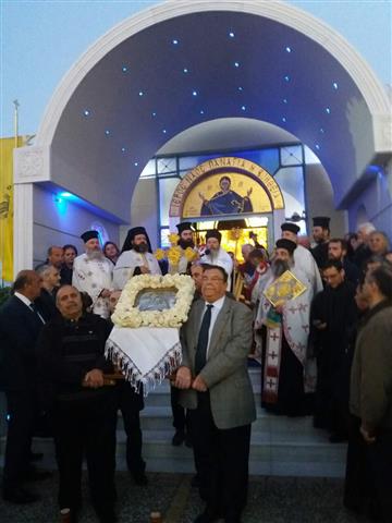 Τὴν παραμονὴ τῆς ἑορτῆς, 23.4.2017, ἐτελέσθη ἡ ἀκολουθία τοῦ Ἑσπερινοῦ καὶ ἐπηκολούθησε ἡ ἱερὰ Λιτανεία τῆς εἰκόνος τῆς Παναγίας, χοροστατοῦντος τοῦ Θεοφιλεστάτου Ἐπισκόπου Κερνίτσης κ. Χρυσάνθου καὶ ὡμίλησε ἐπικαίρως, ἐν πληθούσῃ Ἐκκλησίᾳ.