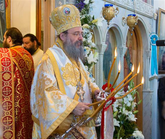 Ὁ Σεβασμιώτατος στὸ κήρυγμά του ἀνεφέρθη στή σχέση τῆς Παναγίας μέ τό Πάθος καί τήν Ἀνάσταση τοῦ Κυρίου καί στήν θαυμαστή βοήθεια τῆς Κυρίας Θεοτόκου πρός τούς ἀνθρώπους γενικῶς καί ἰδίως στούς πονεμένους καί ταλαιπωρημένους ἀδελφούς.