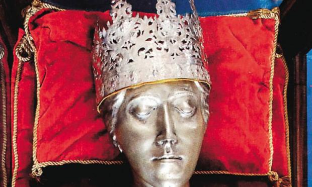 Το ιερό λείψανο αναγνωρίστηκε το 1929. Πρόκειται περί των λειψάνων γυναίκας που έζησε κατά τον 4ο αιώνα και πέθανε σε γεροντική ηλικία (80-85 ετών). Το δεύτερο στοιχείο που πιστοποιεί τη γνησιότητά του είναι ότι προέρχεται «εξ ημών», από την Ανατολή, την Κωνσταντινούπολη.