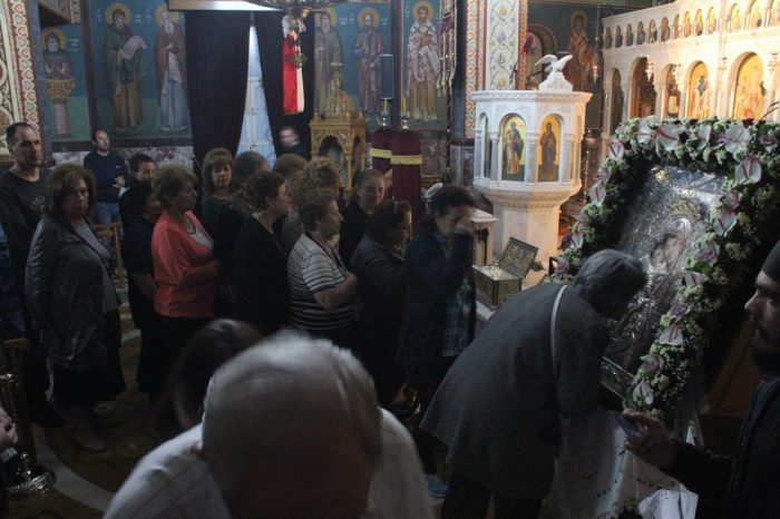 Για 5η συνεχόμενη ημέρα συνεχίζεται το προσκύνημα της εικόνας «Άξιον Εστί», από το Μοναστήρι του Τρικόρφου που έχει έλθει στον Βύρωνα, στον Ιερό Ναό Μεταμορφώσεως του Σωτήρος, όπου αρκετοί πιστοί προσέρχονται καθημερινά στον Ιερό Ναό Μεταμορφώσεως του Σωτήρος, για να λάβουν την χάρη της θαυματουργικής εικόνας, καθώς και την ευλογία των ιερών λειψάνων του Αγ. Ιωάννου του Προδρόμου και του Οσίου Σεραφείμ του Σάρωφ του ιαματικού.