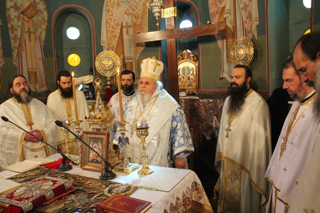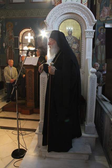 Μετά την ανάγνωση της Ευαγγελικής περικοπής ο Σεβασμιώτατος μίλησε για την μεγάλη προσφορά των Αγίων Κωνσταντίνου και της μητρός του Ελένης προς τον Χριστιανισμό και την Εκκλησία μας. Ιδιαίτερα δε, τόνισε, ποιος ήταν ο λόγος για τον οποίο οδήγησε τον λαό και την Εκκλησία στην αγιοκατάταξη των Αυτοκρατόρων Κωνσταντίνου και Ελένης.