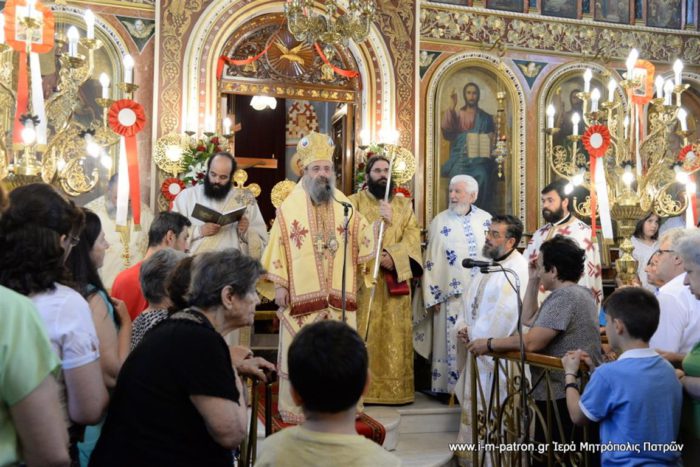 Ἀνήμερα, 4.6.2017, ἐτελέσθη ἡ Θεία Λειτουργία ὑπό τοῦ Σεβασμιωτάτου Μητροπολίτου Πατρῶν κ.κ. Χρυσοστόμου στόν Ἱερό Ναό Ἁγίας Τριάδος Ζαρουχλεΐκων, ὁ ὁποῖος τόσο ἐντός, ὃσο καί τά πέριξ αὐτοῦ κατεκλύσθησαν ἀπό χιλιάδες προσκυνητάς.