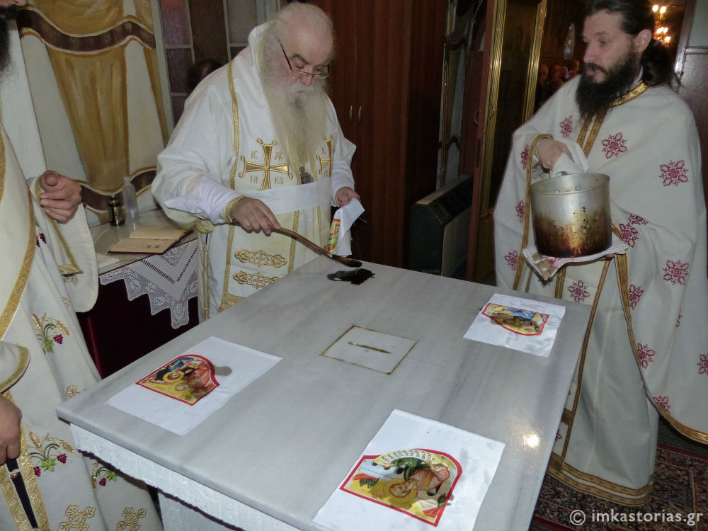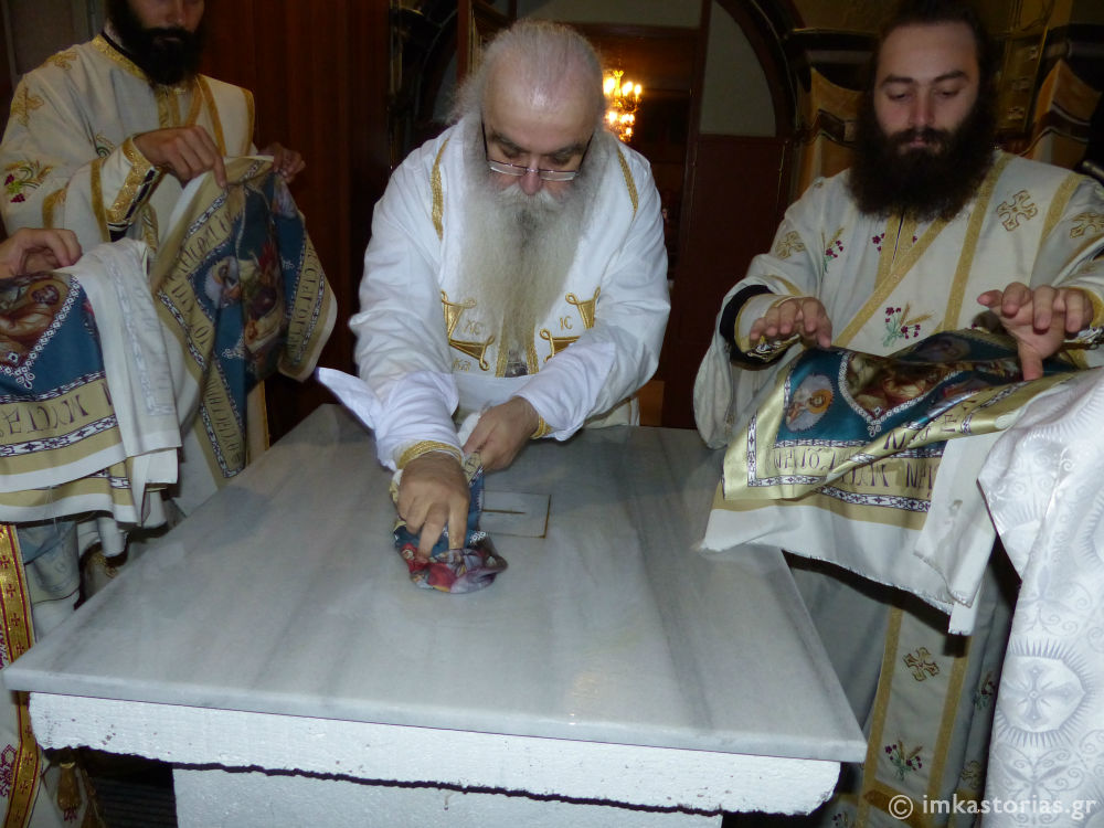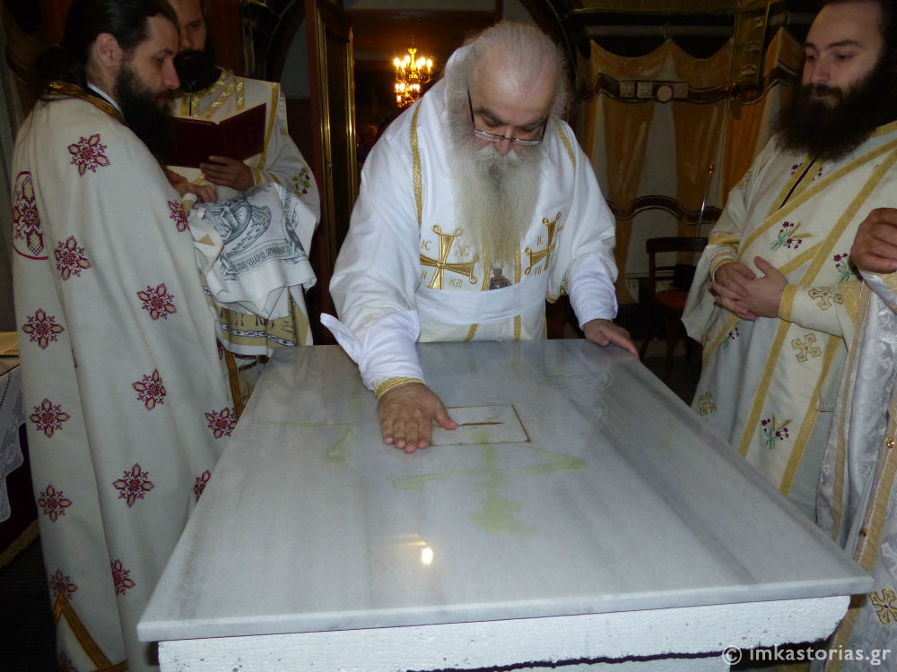 Τα Εγκαίνια της Αγίας Τραπέζης του δεξιού κλίτους του Ιερού Ναού Αγίου Δημητρίου Κωσταραζίου, προς τιμήν του Αγίου Παϊσίου του Αγιορείτου, τέλεσε ο Σεβασμιώτατος Μητροπολίτης Καστορίας κ. Σεραφείμ σήμερα, Κυριακή της Συνάξεως των Αγιορειτών Πατέρων.