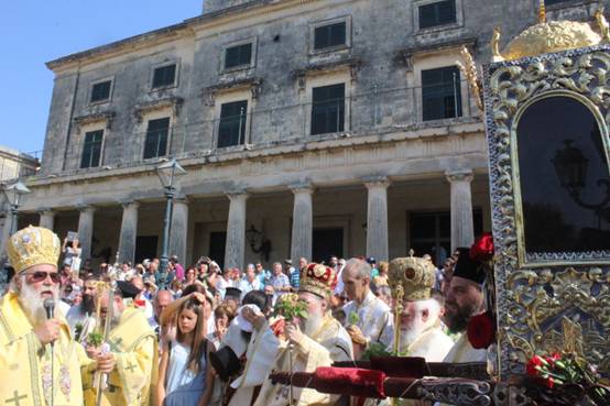 Με ιδιαίτερη λαμπρότητα τελέστηκε το πρωί της Παρασκευής 11 Αυγούστου 2017 η λιτανεία του Ιερού Σκηνώματος του Αγίου και Θαυματουργού Σπυρίδωνος, για την απαλλαγή της νήσου από την επιδρομή των Οθωμανών Τούρκων το έτος 1716. Παρέστησαν οι Μητροπολίτες Ατλάντας κ. Αλέξιος, Θεσσαλιώτιδος και Φαναριοφερσάλων κ. Τιμόθεος, Καρπενησίου κ. Γεώργιος, ο Θεοφιλέστατος Επίσκοπος Θαυμακού κ. Ιάκωβος, ο Επίσκοπος Σέργιος εκ Ρωσίας και ο επιχώριος Μητροπολίτης Κερκύρας Παξών και Διαποντίων Νήσων κ. Νεκτάριος.