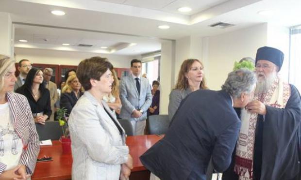Τέλος σήμερα το πρωί κ. Νεκτάριος μετέβη στο Δικαστικό Μέγαρο Κέρκυρας, όπου και τέλεσε τον Αγιασμό. Ο κ. Νεκτάριος έτυχε θερμής υποδοχής από τους δικαστικούς λειτουργούς και στον λόγο του τόνισε ότι εκείνοι βρίσκονται στο μεταίχμιο, μεταξύ της δικαιοσύνης του Θεού και εκείνης των ανθρώπων. Η Εκκλησία προσεύχεται και για εκείνους, προκειμένου να φωτισθούν από τον Χριστό, για την απονομή της δικαιοσύνης. Ο δικαστικός παίρνει δύναμη ατενίζοντας την εικόνα του Δεσπότου Χριστού.