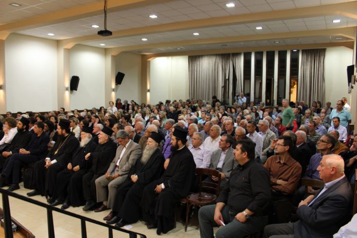 Σήμερα Κυριακή 22 Οκτωβρίου 2017 και ώρα 6 το απόγευμα, εκατοντάδες Λαρισαίοι πολίτες συγκεντρωθήκαμε στην αίθουσα της Γ.Ε.Χ.Α. Λαρίσης, ύστερα από πρόσκληση του Συλλόγου Πολυτέκνων και εννέα συνεργαζομένων Ορθοδόξων Χριστιανικών Συλλόγων της πόλης μας, προκειμένου να ενημερωθούμε επί του θέματος του νέου Προγράμματος Σπουδών του μαθήματος των Θρησκευτικών και των νέων βιβλίων («φάκελοι μαθητών») Δημοτικού, Γυμνασίου και Λυκείου.