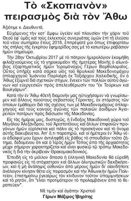 “Το "Σκοπιανόν" πειρασμός διά τον Άθω.”