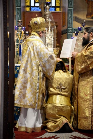 Κατὰ τὴν διάρκεια τῆς Θείας Λειτουργίας ὁ Σεβασμιώτατος ἐχειροτόνησε εἰς Διάκονον τὸν εὐλαβέστατο νέο, Χρῖστο Ζαφειρόπουλο, πρὸς τὸν ὁποῖο ἀπηύθυνε πατρικὲς συμβουλὲς γιὰ τὴν νέα του ἱερατικὴ διακονία.