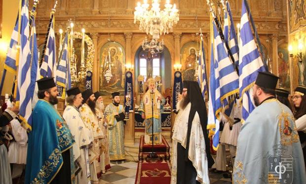 Μετά το τέλος της Θείας Λειτουργίας, η κ. Αθανασία Ψάλτη, Προϊσταμένη της εφορείας Αρχαιοτήτων Φωκίδος, εκφώνησε τον πανηγυρικό λόγο για την επέτειο της 25ης Μαρτίου και εν συνεχεία τελέσθηκε η επίσημη Δοξολογία για την απελευθέρωση του Έθνους μας το 1821 από τον τουρκικό ζυγό.