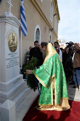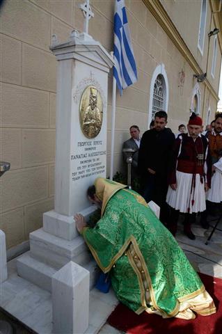 Μετὰ τὴν Θεία Λειτουργία ἀνεπέμφθη δέηση ὑπὲρ ἀναπαύσεως τῆς ψυχῆς τοῦ ἥρωος Ἱερέως Γεωργίου ἐνώπιον τῆς προτομῆς του στόν προαύλιο χῶρο τοῦ Ναοῦ καὶ κατετέθησαν στέφανοι.