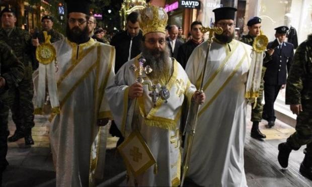Γι’ αυτό Χριστιανοί μου, προσεύχομαι ιδιαιτέρως τούτη την ώρα, αυτή την ελευθερία για την οποία αγωνίστηκαν οι πρόγονοί μας, να τη στείλει απόψε και να λιτανεύσει το άχραντο Σώμα Του, μέσα στα σκοτεινά κελιά των φυλακών της Ανδριανουπόλεως, όπου 2 Έλληνες στρατιώτες, σάρκα από τη σάρκα μας και οστούν από τα οστά μας αναίτια σε καιρό ειρήνης βρίσκονται στα χέρια του εχθρού με ιταμές προκλήσεις και ανεπίτρεπτες επιθυμίες στα χώματά μας», ανέφερε.