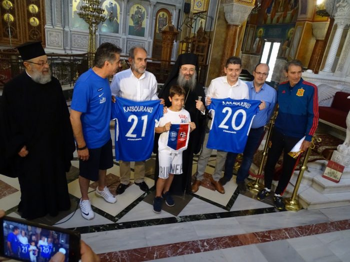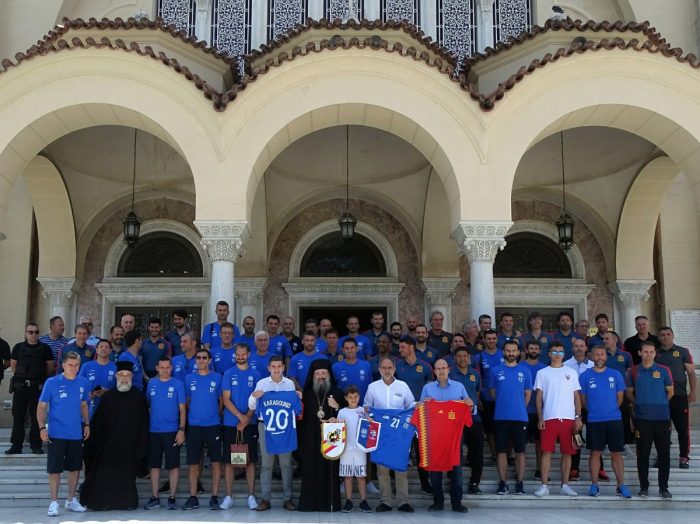Τόσον ὁ Ἀρχηγὸς τῆς Ἐθνικῆς Ὁμάδος Θεόδωρος Ζαγοράκης, ὅσο καὶ ὁ Ἀρχηγὸς τῆς Ἱσπανικῆς, προσέφεραν στὸν Σεβασμιώτατο, ἀπὸ ἕνα λάβαρο τῆς Ὁμάδος τους, ἀντιστοίχως, μὲ τὶς ὑπογραφὲς τῶν παικτῶν καὶ εὐχαρίστησαν τὸν Μητροπολίτη τῆς Ἀχαϊκῆς Πρωτευούσης.