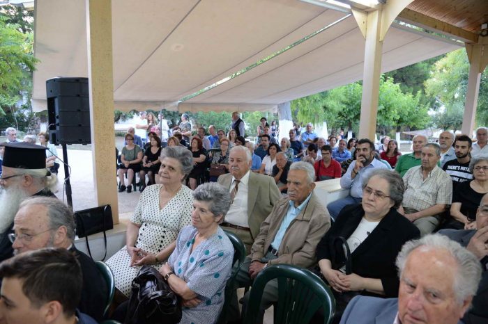 Μετά τήν ἱερά ἀκολουθία, πραγματοποιήθηκε ἡ καθιερωμἐνη ἐκδήλωση στό αἲθριο τῶν Κατασκηνώσεων, μέ ὁμιλητή τόν ὁρισθέντα ὑπό τοῦ Σεβασμιωτάτου, Ἀρχιμ.π. Ιερόθεο Ἀνδρουτσόπουλο, Ιεροκήρυκα της Ιεράς Μητροπόλεως Πατρῶν, ὁ ὁποῖος ἀνέπτυξε τό θέμα μέ τίτλο: «Ο π. Γερβάσιος στο χθές, στο σήμερα και στο αύριο» .