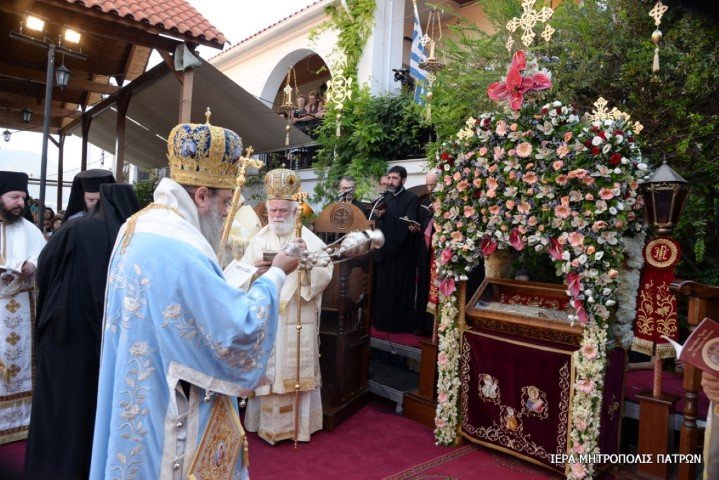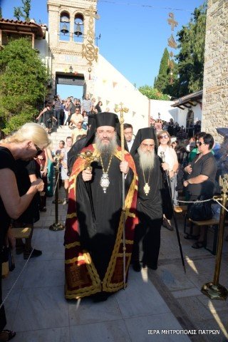 Μέ τόν Σεβασμιώτατο Μητροπολίτη Πατρῶν κ.κ. Χρυσόστομο, συγχοροστάτησαν ὁ Σεβασμιώτατος Μητροπολίτης Ἀτλάντας κ. Ἀλέξιος καί ὁ Θεοφιλέστατος Ἐπίσκοπος Κερνίτσης κ. Χρύσανθος. Συμμετεῖχαν στήν Ἀκολουθία ὁ Ἡγούμενος τῆς Μονῆς, π. Συμεών καί οἱ Πατέρες τῆς Μονῆς καί ἂλλοι Κληρικοί τῆς Ἱερᾶς Μητροπόλεως.