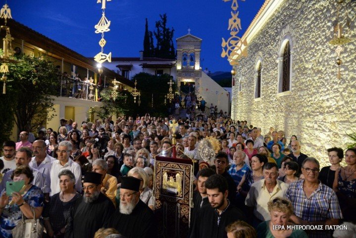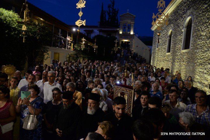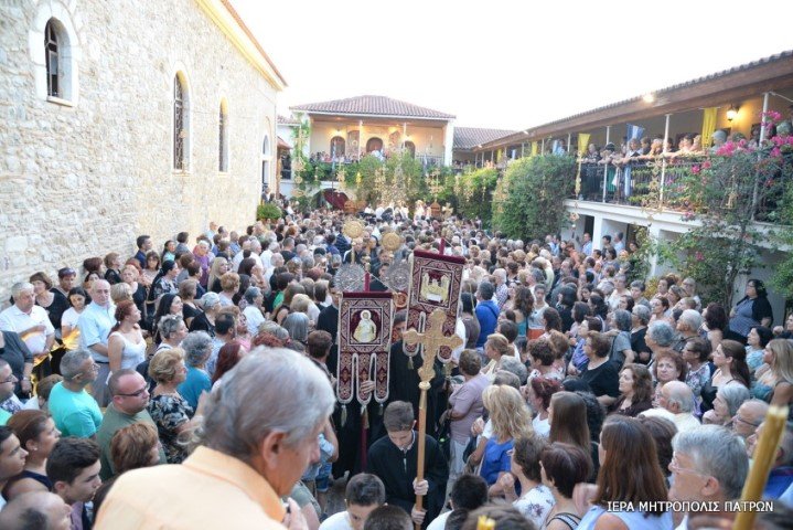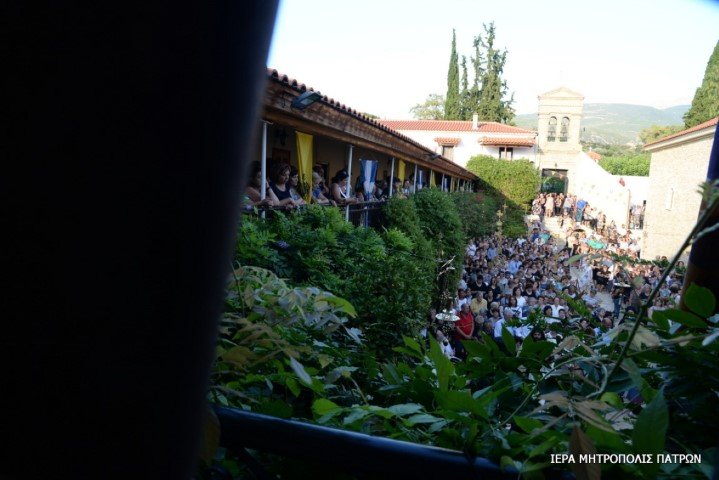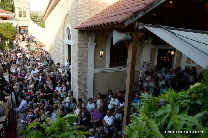 Πλήθη πιστῶν κατέκλυσαν τό ἱστορικό Μοναστήρι τῆς Παναγίας Γηροκομητίσσης τῶν Πατρῶν , τήν Κυριακή 12 Αὐγούστου 2018 προκειμένου νά συμμετάσχουν στήν Ἱερά Ἀκολουθία τῶν Ἐγκωμίων τῆς Θεοτόκου, πού τελεῖται κάθε χρόνο τήν Κυριακή πρό τῆς ἑορτῆς τῆς Κοιμήσεώς Της.