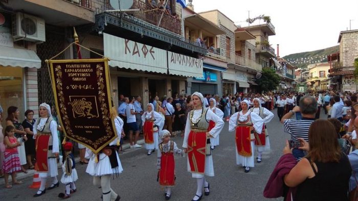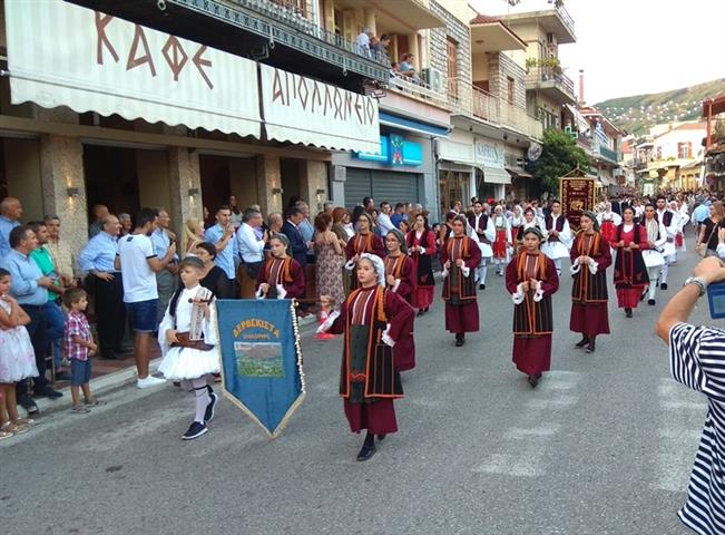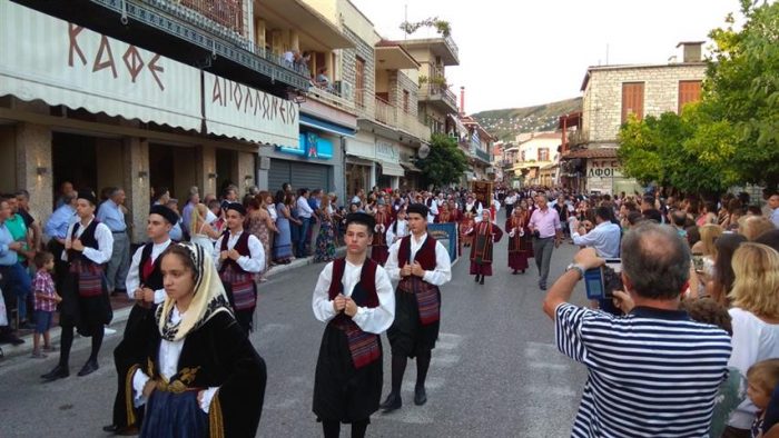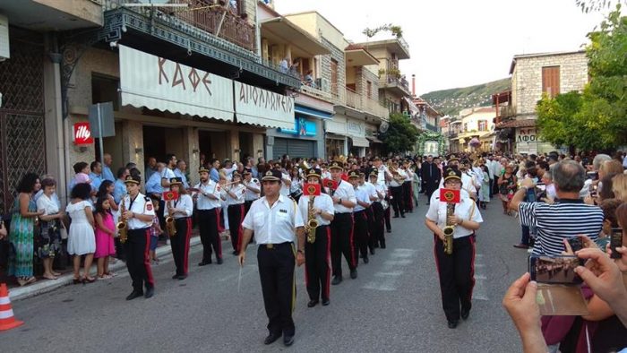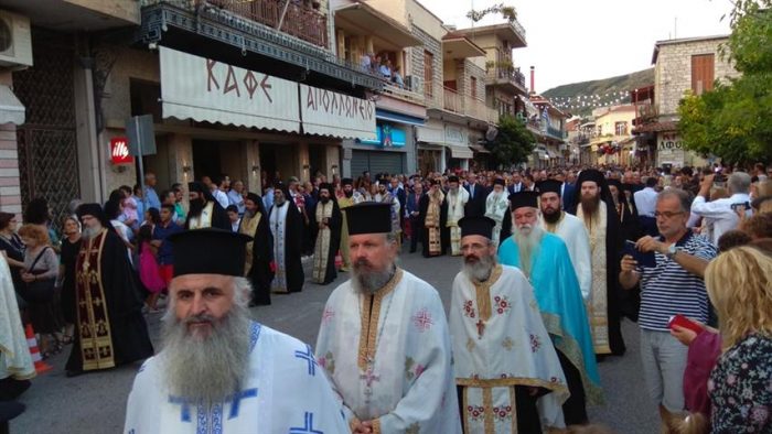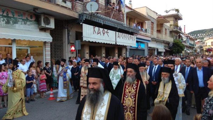 Υπό τους ήχους της Φιλαρμονικής του Δήμου Αγρινίου και με τη συνοδεία στρατιωτικού αγήματος του 2/39 Συντάγματος Ευζώνων (Μεσολογγίου), ξεκίνησε η λιτανευτική πομπή της ιεράς Εικόνας του Αγίου με κατεύθυνση τον Ιερό Ναό Κοιμήσεως της Θεοτόκου, ενώ προηγουμένως, στην κεντρική πλατεία, τελέσθηκε αρτοκλασία και μίλησε στους πιστούς ο Μητροπολίτης Ναυπάκτου.