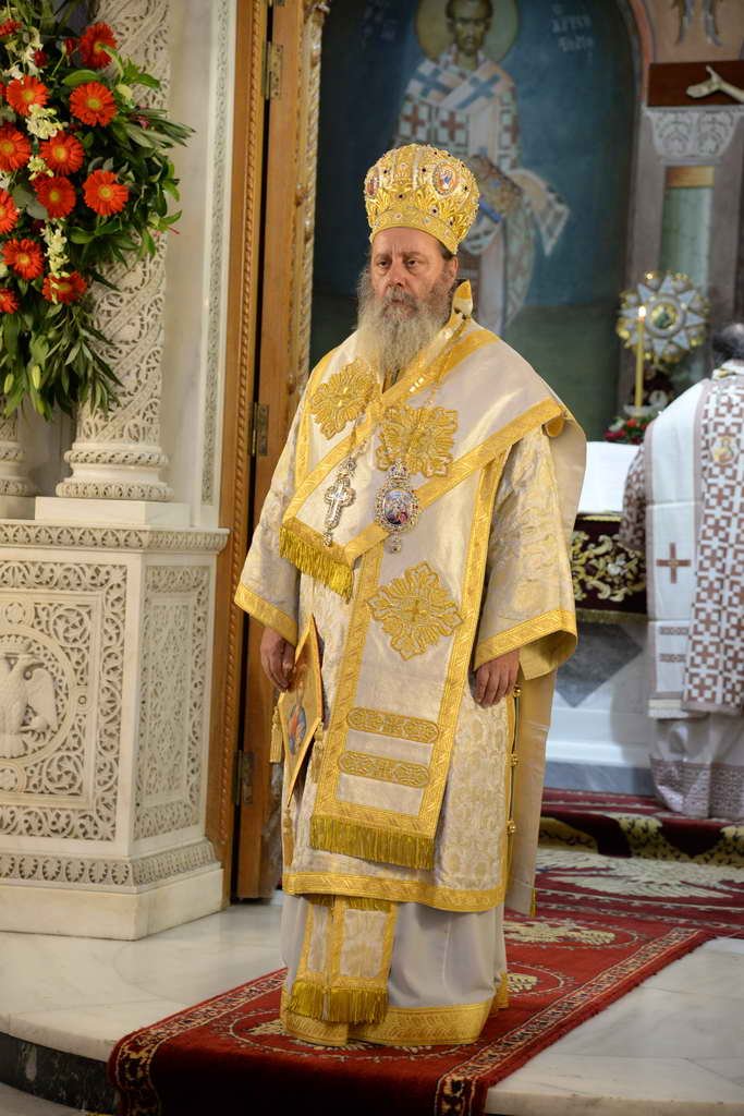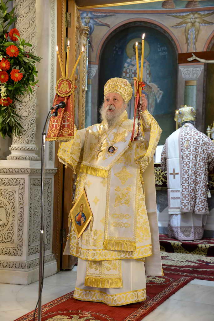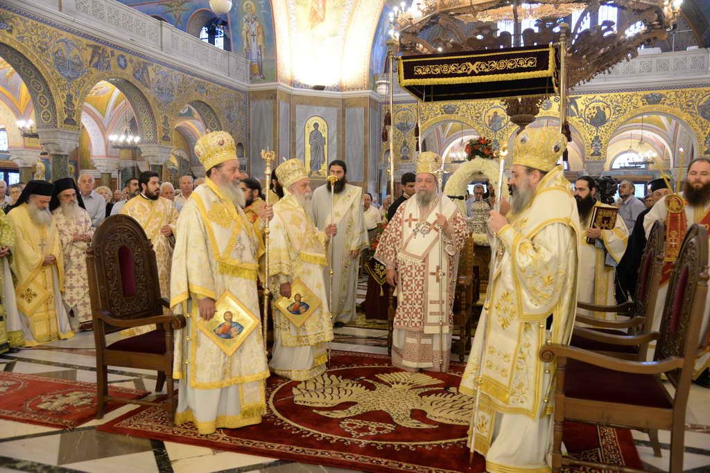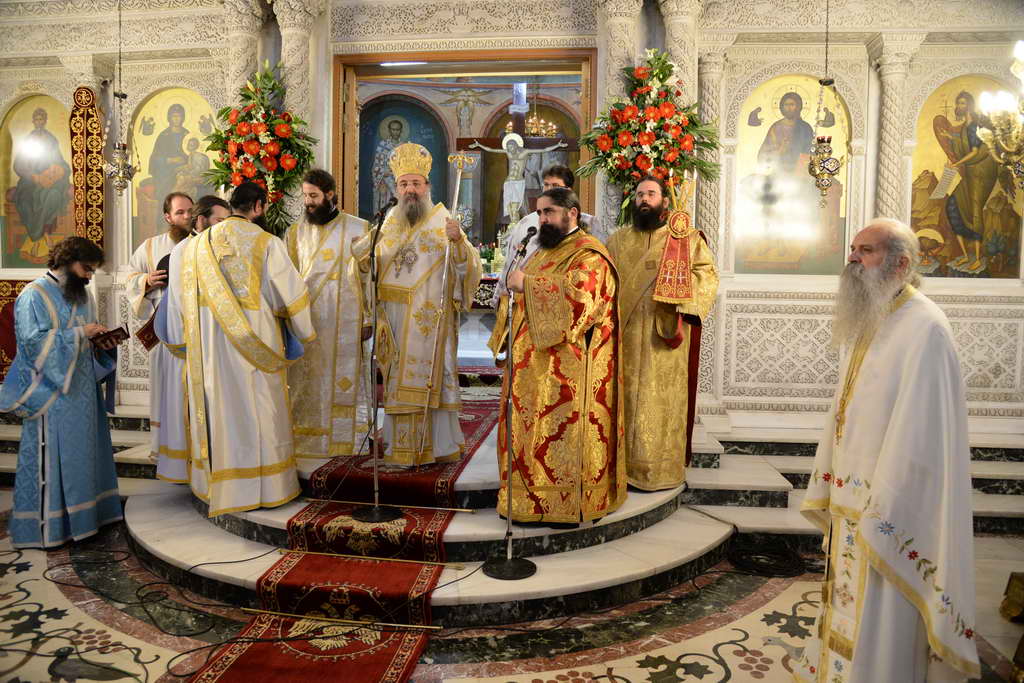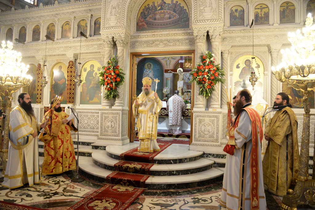 Τῆς Θείας Λειτουργίας προέστη ὁ Σεβασμιώτατος Μητροπολίτης Διαυλείας κ. Ἀλέξιος, συλλειτουργούντων τῶν Σεβασμιωτάτων Μητροπολιτῶν: Γρεβενῶν κ. Δαυίδ, Πατρῶν κ. Χρυσοστόμου καὶ τῶν Θεοφιλεστάτων Ἐπισκόπων: Μεθώνης κ. Κλήμεντος καὶ Κερνίτσης κ .Χρυσάνθου.