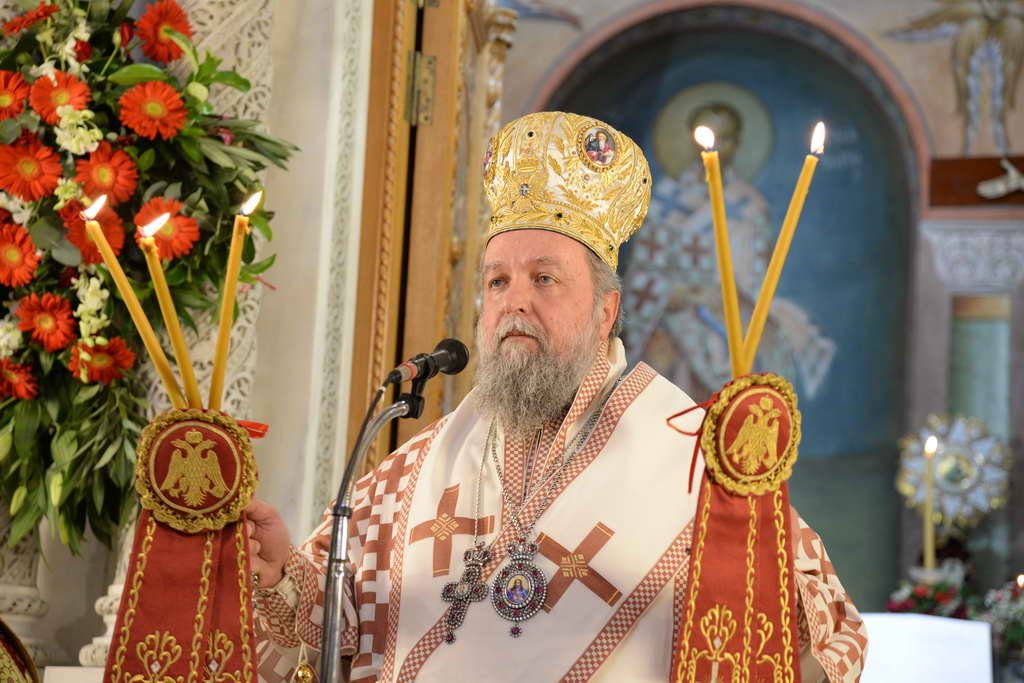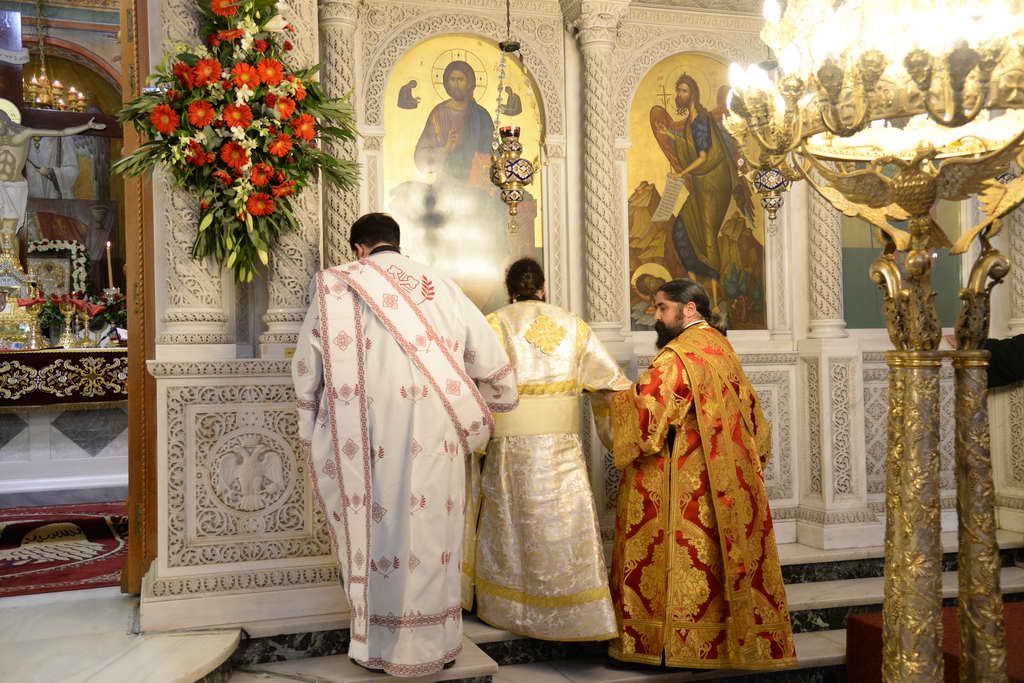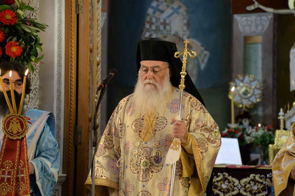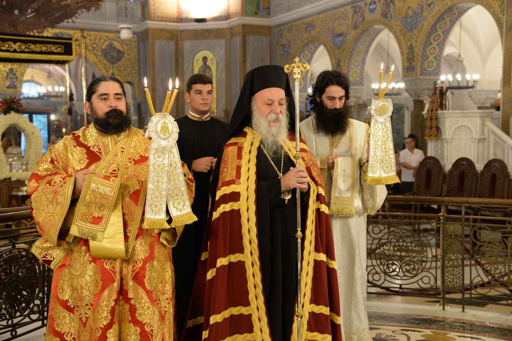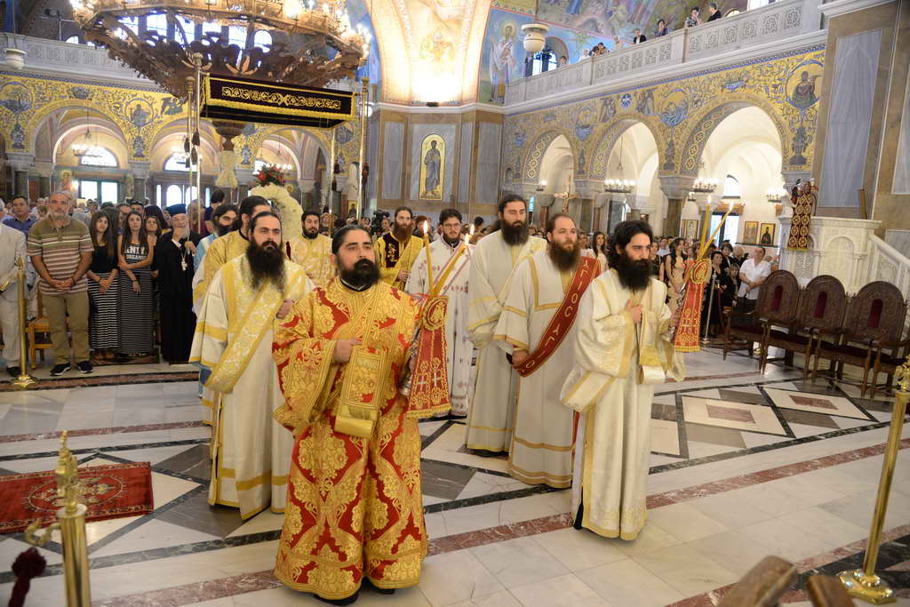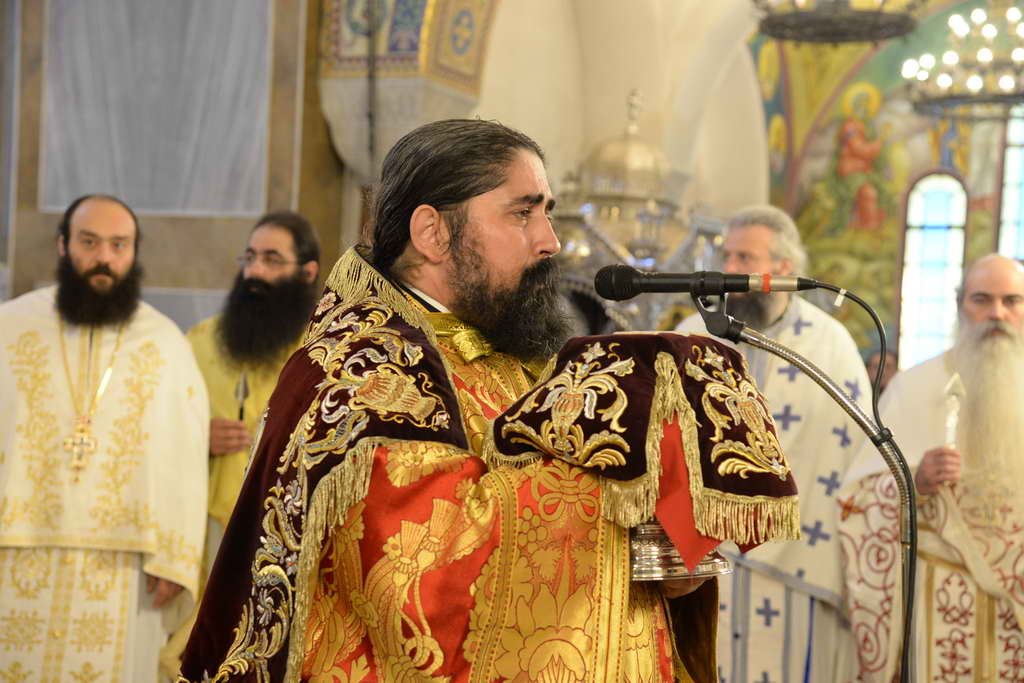 Τῆς Θείας Λειτουργίας προέστη ὁ Σεβασμιώτατος Μητροπολίτης Διαυλείας κ. Ἀλέξιος, συλλειτουργούντων τῶν Σεβασμιωτάτων Μητροπολιτῶν: Γρεβενῶν κ. Δαυίδ, Πατρῶν κ. Χρυσοστόμου καὶ τῶν Θεοφιλεστάτων Ἐπισκόπων: Μεθώνης κ. Κλήμεντος καὶ Κερνίτσης κ .Χρυσάνθου.
