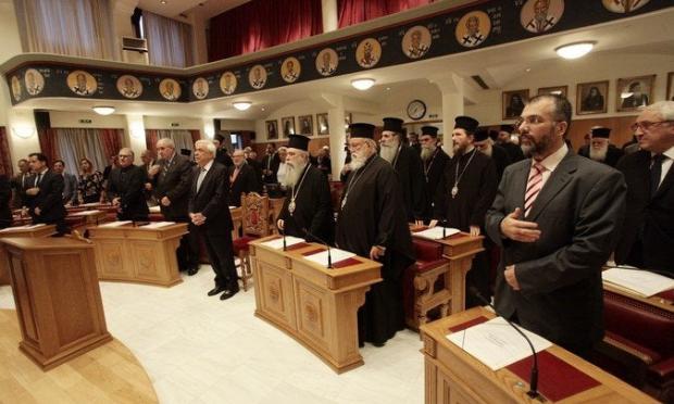 Η Συνεδρία πραγματοποιήθηκε στην Αίθουσα του Μεγάλου Συνοδικού ενώ ταυτόχρονα προβαλόταν στην κατάμεστη αίθουσα εκδηλώσεων της Ιεράς Συνόδου.