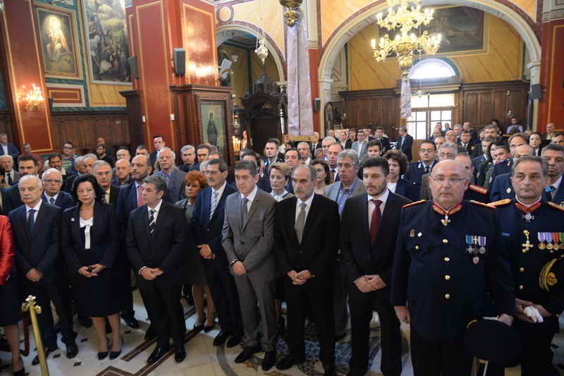 Μετὰ τὴν Θεία Λειτουργία καὶ τὸ ἱερὸ μνημόσυνο ἀκολούθησε ἡ Δοξολογία, παρουσίᾳ τοῦ Γενικοῦ Γραμματέως τοῦ Ὑπουργείου Ναυτιλίας καὶ Νησιωτικῆς Πολιτικῆς κ. Διονυσίου Τεμπονέρα, Ἐκπροσώπου τῆς Ἑλληνικῆς Κυβερνήσεως καὶ τῶν ἄλλων Πολιτικῶν, Στρατιωτικῶν καὶ λοιπῶν Ἀρχῶν.