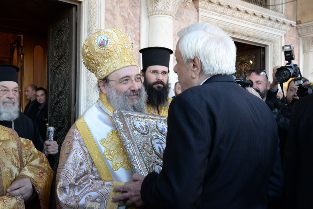 Ὁ Σεβασμιώτατος Μητροπολίτης Πατρῶν κ.κ. Χρυσόστομος προσέφερε ἱεράν εἰκόνα στόν Πρόεδρο τῆς Δημοκρατίας, μέ τήν σταύρωση τοῦ Ἁγίου Ἀποστόλου Ἀνδρέου.