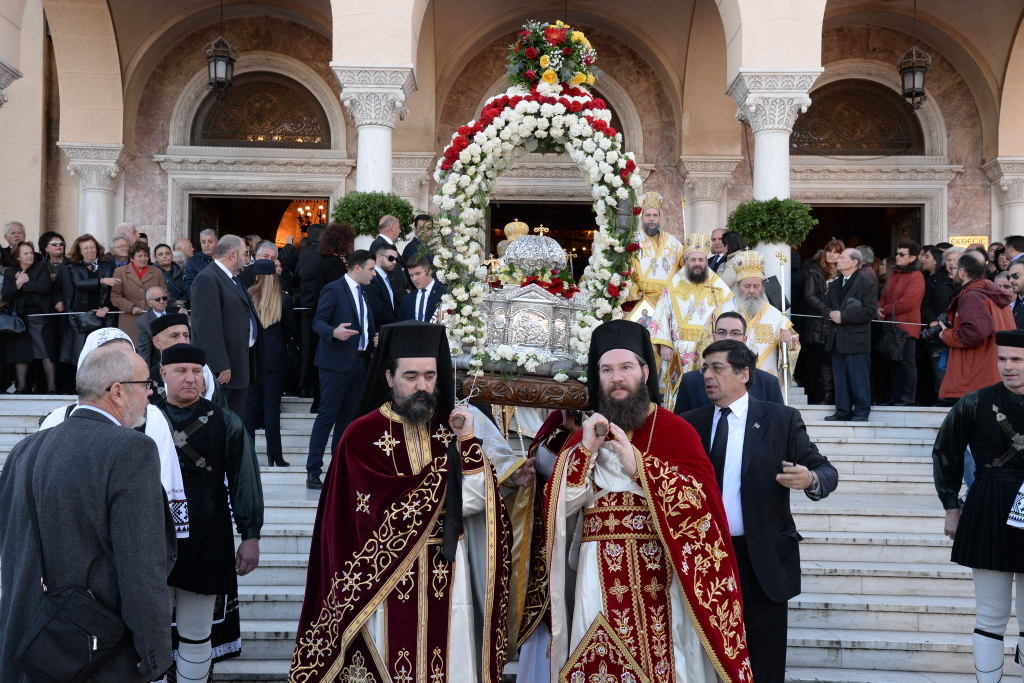 Ἐπίσης καθηκόντως μεταφέρω τάς εὐχάς τοῦ Μακαριωτάτου Ἀρχιεπισκόπου Ἀθηνῶν καί Πάσης Ἑλλάδος κ.κ. Ἱερωνύμου καί τῆς Ἱερᾶς Συνόδου τῆς Ἐκκλησίας τῆς Ἑλλάδος πρός ἃπαντας ἐπί τῇ εὐσήμῳ ταύτῃ ἑορτῇ καί πανηγύρῃ.
