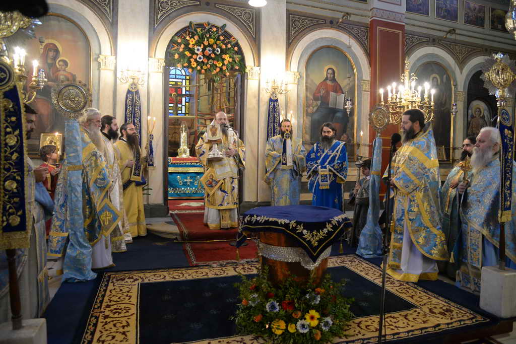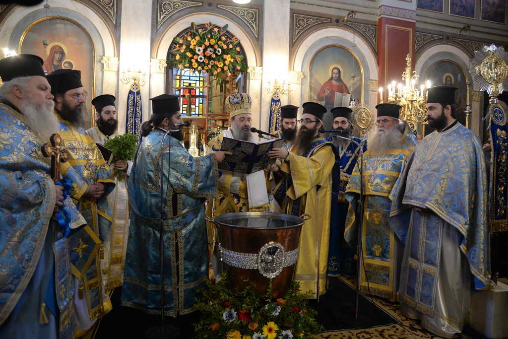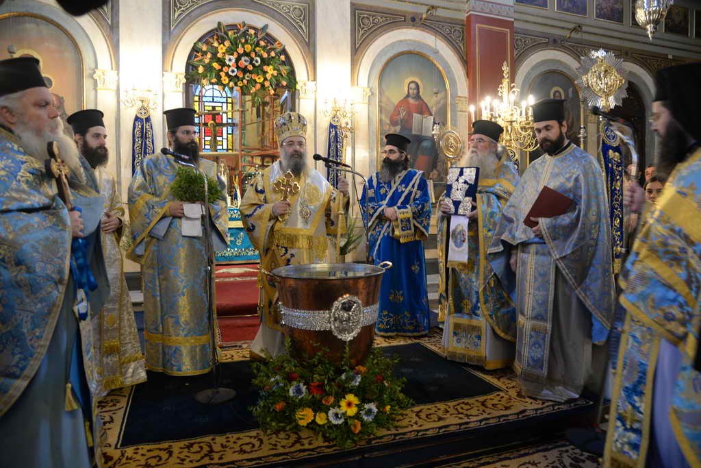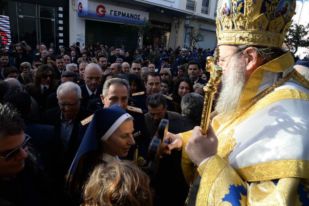 Ἐνωρίτερα ἐτελέσθη ἡ Θεία Λειτουργία καί ὁ Μέγας Ἁγιασμός τῶν Θεοφανείων, στόν Ἱερό Μητροπολιτικό Ναό Εὐαγγελιστρίας Πατρῶν, μέ τήν συμμετοχή ἁπάντων τῶν Ἀρχόντων τοῦ τόπου καί πλήθους Λαοῦ, ὁ ὁποῖος συνόδευσε λιτανευτικά τόν Τίμιο Σταυρό, μέχρι τό Λιμάνι τῆς Πάτρας, ὃπου ἒγινε ἡ τελετή τῆς καταδύσεως τοῦ Σταυροῦ, χοροστατοῦντος τοῦ Σεβασμιωτάτου Μητροπολίτου Πατρῶν κ.κ. Χρυσοστόμου καί συγχοροστατοῦντος τοῦ Θεοφιλεστάτου Ἐπισκόπου Κερνίτσης κ. Χρυσάνθου, ὁ ὁποῖος ἐνωρίτερα εἶχε τελέσει τήν Θεία Λειτουργία καί τόν Μεγάλο Ἁγιασμό στόν Ἱερό Ναό τοῦ Πολιούχου τῶν Πατρῶν, Ἁγίου Ἀποστόλου Ἀνδρέου.