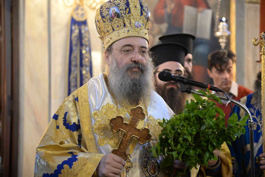 «...Μπράβο σας παιδιά μου, τούς εἶπε ὁ Μητροπολίτης , ξανά πεῖτε το δυνατά νά τό ἀκούσῃ ἡ Οἰκουμένη, ὃτι ἡ Πατρίδα μας εἶναι εὐλογημένη ἀπό τόν Θεό γιατί εἶναι Ὀρθόδοξη.Ὃπως λάμπει σήμερα ὁ ἣλιος (συνέχισε ὁ Μητροπολίτης), ἒτσι νά λάμπῃ καί τό φῶς τοῦ Κυρίου στίς καρδιές ὃλων μας, προσωπικά στοῦ καθενός, στίς καρδιές τῶν Ἀρχόντων τοῦ τόπου μας καί τῆς Πατρίδος μας, στίς καρδιές ὃλων τῶν Ἑλλήνων γιά νά κατανοήσωμε τήν ἀλήθεια ὃτι α) ὁ Ἰησούς Χριστός εἶναι ὁ Ἀληθινός Θεός πού ἒγινε ἂνθρωπος γιά τήν ἰδική μας σωτηρία καί β) Ὃτι ἡ Ἑλλάδα εἶναι ἡ χώρα τοῦ Ἐνανθρωπήσαντος Θεοῦ, τοῦ Ἐσταυρωμένου καί Ἀναστάντος Κυρίου μας, εἶναι ἡ χώρα τῶν Ἁγίων. Γι’ αὐτό πρέπει νά κρατήσωμε τήν παρακαταθήκη καί τήν ἀλήθεια ἀκέραια ὃπως μᾶς τήν ἀπεκάλυψε ὁ Θεός καί μᾶς τήν παρέδωσε ὁ Ἀπόστολος Ἀνδρέας καί οἱ Πατέρες μας...»