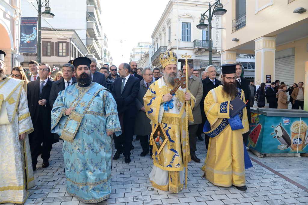 Ἡλιόλουστη ἡ ἡμέρα τῶν Θεοφανείων στήν Πάτρα, μέ τά νερά τοῦ Πατραϊκοῦ γαλήνια καί καθάρια νά δέχωνται τόν Τίμιο Σταυρό ριπτόμενον ἀπό τά χέρια τοῦ Μητροπολίτου Πατρῶν, μέ χιλιάδες Πατρινούς νά ψάλλουν μαζί μέ τόν Ἱερό Κλῆρο καί τούς Ἱεροψάλτας τό « Ἐν Ἰορδάνῃ Βαπτιζομένου σου Κύριε...».