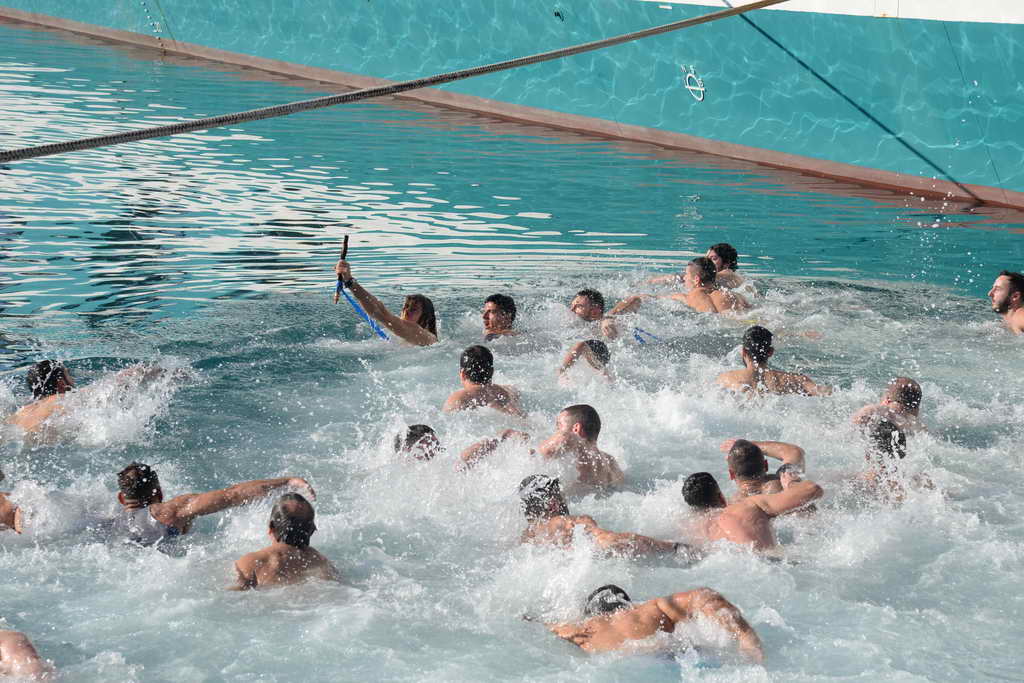 Συγκλόνισαν οἱ δεκάδες νέων πού ἒπεσαν στά νερά τοῦ λιμανιοῦ τῆς Πάτρας γιά νά πιάσουν τόν Τίμιο Σταυρό κραυγάζοντας ζήτω ἡ Ὀρθοδοξία μας, ζήτω ἡ Ἑλλάδα μας, ἐνῶ ἦταν μέσα στά νερά νά προκαλέσουν ρίγη συγκινήσεως στά πλήθη, ψάλλοντας τόν Ἐθνικό Ὓμνο. Τόν Τίμιο Σταυρό ἀνέσυρε ὁ εὐσεβής νέος Μᾶρκος Ἀναστασόπουλος.
