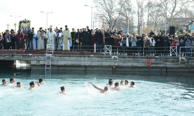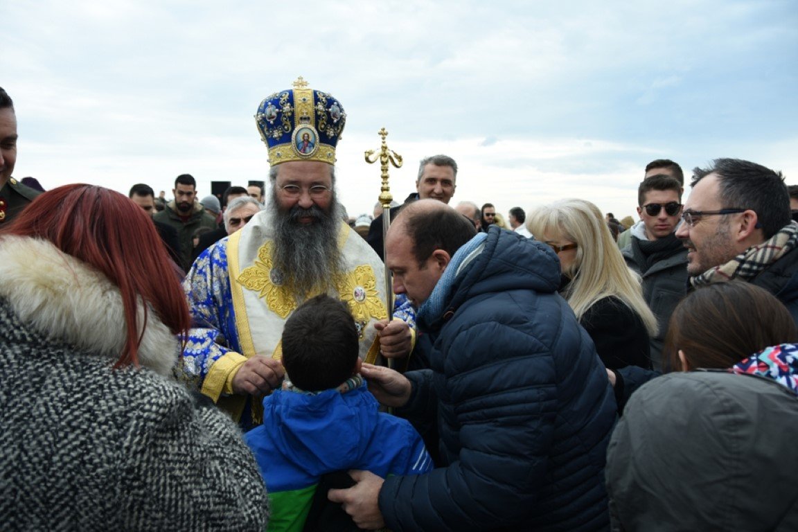 Η κεντρική τελετή Καταδύσεως του Τιμίου Σταυρού έλαβε χώρα στις 13.00 το μεσημέρι στην Παραλία Κατερίνης, προεξάρχοντος του Σεβασμιωτάτου κ. Γεωργίου, συμπροσευχομένου του Σεβασμιωτάτου Αρχιεπισκόπου Τελμησού κ. Ιώβ και με τη συμμετοχή των κληρικών της Κατερίνης.
