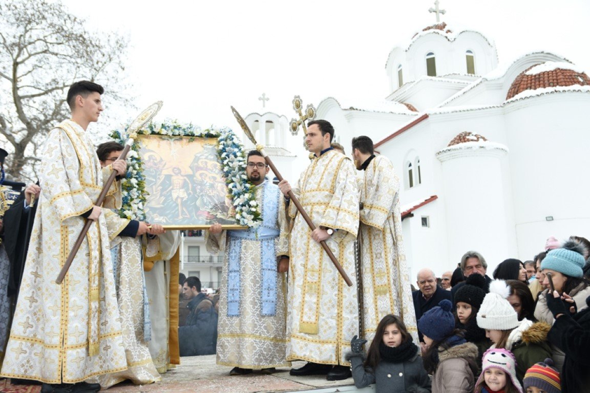 Παρά τις δυσμενείς καιρικές συνθήκες, πλήθος πιστών συμμετείχε σε όλες τις ιερές ακολουθίες, εορτάζοντας το γεγονός της Βάπτισης του Κυρίου, που αποτελεί κορύφωση των εορτών του Αγίου Δωδεκαημέρου.