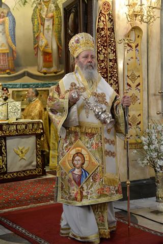 Ὁ Σεβασμιώτατος στὸ κήρυγμά του ἀνεφέρθη στήν δράση καί προσφορά τοῦ Παλαιῶν Πατρῶν Γερμανοῦ στήν ὑπόθεση τῆς ἐλευθερίας τῆς Ἑλλάδος ἀπό τόν τουρκικό ζυγό καί ἀπηύθυνε μηνύματα ἐπίκαιρα πρός τούς σημερινούς Ἓλληνες, ἀπαραίτητα γιά νά διατηρήσωμε τήν ἰδιοπροσωπία καί τήν πνευματική μας ταυτότητα ὡς Λαός.