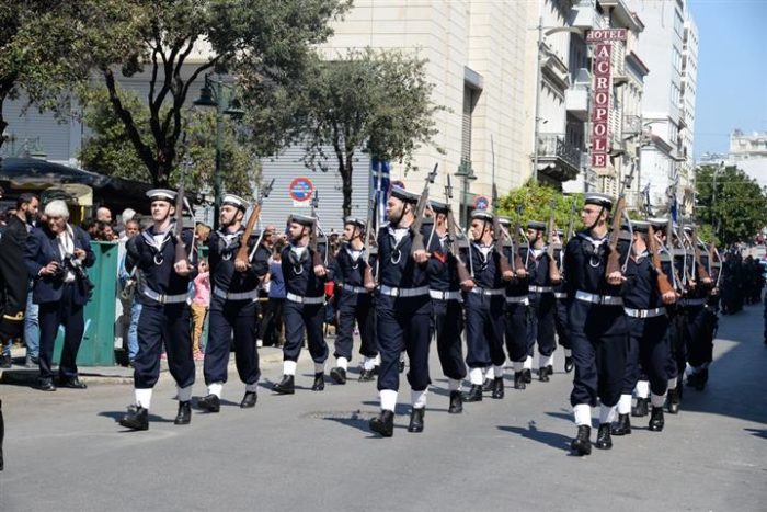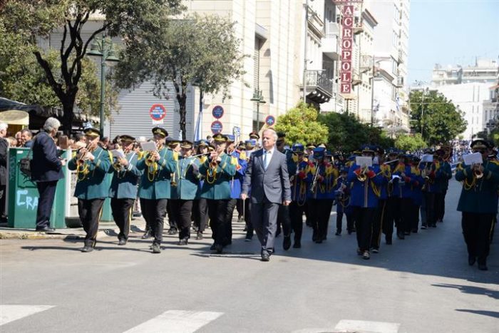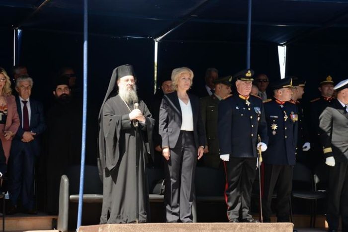 Ἐν συνεχείᾳ ὁ Σεβασμιώτατος παρηκολούθησε τήν Παρέλαση τῶν Μαθητικῶν καί Στρατιωτικῶν τμημάτων καί ἐτόνισε σέ δηλώσεις του πρός τά Μ.Μ.Ε. ὃτι πρέπει νά κρατήσωμε ἀκέραια τήν Ἱερά Παρακαταθήκη πού μᾶς ἂφησαν μέ τίς θυσίες τους οἱ Ἣρωες καί Μάρτυρες τῆς Πίστεως καί τῆς Πατρίδος. Ἡ ἱστορία βεβαιώνει ὃτι: «Οἱ Λαοί πού λησμονοῦν εἶναι καταδικασμένοι νά ἐξαφανισθοῦν ἀπό τό προσκήνιο τῆς Ἱστορίας».