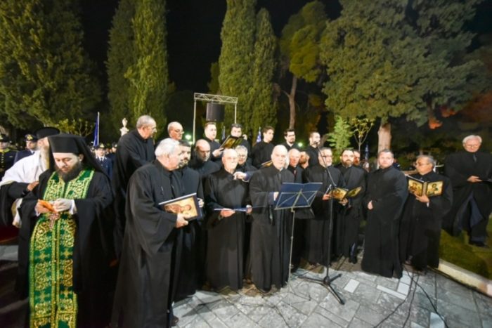 Στον Κήπο των Ηρώων, ενώπιον του Τύμβου όπου φυλάσσονται τα οστά των Πεσόντων της Εξόδου, τελέσθηκε επιμνημόσυνη δέηση και έγινε κατάθεση στεφάνων, ενώ ακολούθησε η εκφώνηση του πανηγυρικού της ημέρας από τον Δήμαρχο της Ιεράς Πόλεως Μεσολογγίου κ. Νικόλαο Καραπάνο.