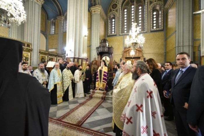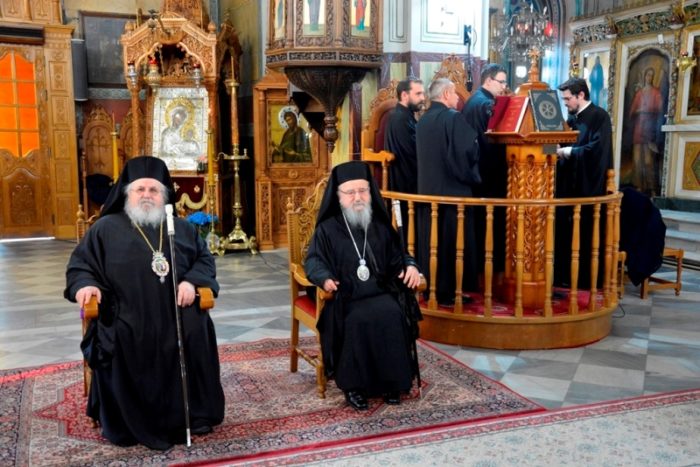 Το απόγευμα του Σαββάτου στον Ιερό Μητροπολιτικό Ναό Αγίου Σπυρίδωνος τελέσθηκε η ακολουθία του Μεγάλου Εσπερινού, χοροστατούντος του Μητροπολίτου Γρεβενών κ. Δαβίδ και συνχοροστατούντων του Μητροπολίτου Καισαριανής, Βύρωνος και Υμηττού κ. Δανιήλ και του Ποιμενάρχου μας, Μητροπολίτου Αιτωλίας και Ακαρνανίας κ. Κοσμά.