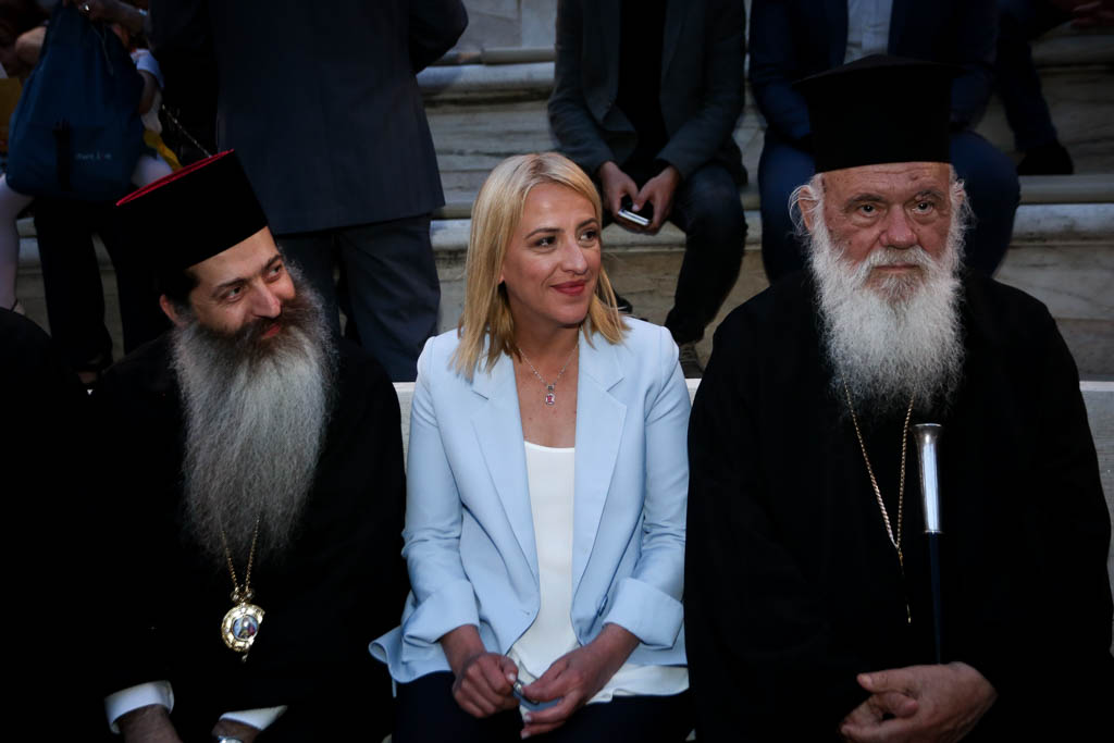Παρέστησαν, επίσης, ο Μητροπολίτης Νέας Ιωνίας και Φιλαδελφείας κ. Γαβριήλ, η Περιφερειάρχης κ. Ρένα Δούρου, αρχηγοί κομμάτων, υπουργοί και πολιτικοί, ενώ τον αρχιεπίσκοπο συνόδευε ο Πρωτοσύγγελλος της Αρχιεπισκοπής Επίσκοπος Θεσπιών κ. Συμεών.
