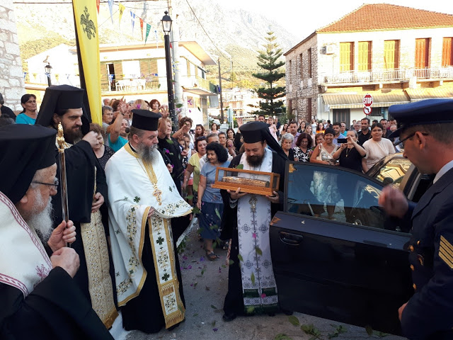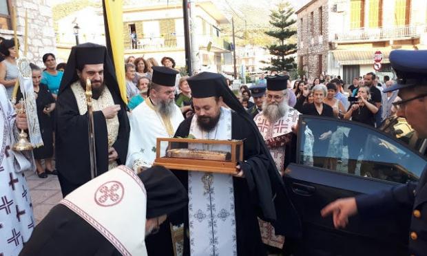 Το χαριτόβρυτο λείψανο προσεκόμισε από την Ιερά Μονή Αγίας Τριάδας -Αγίου Νεκταρίου Αιγίνης, ο Πανοσιολογιώτατος Αρχιμ. π. Χριστοφόρος Καραβίας κατόπιν αιτήσεως του Σεβασμιωτάτου Μητροπολίτου Αιτωλίας και Ακαρνανίας κ.κ. Κοσμά και του εφημερίου της ενορίας Παλαίρου πρωτοπρεσβυτέρου π. Κων/νου Γατσούλη....... Η επίσημη υποδοχή πραγματοποιήθηκε στις 7:00 μ.μ. έμπροσθεν του Ιερού Ναού Αγίας Παρασκευής Παλαίρου, από τον Σεβασμιότατο Μητροπολίτη Αιτωλίας και Ακαρνανίας κ.κ. Κοσμά και στην συνέχεια τελέσθηκε Δοξολογία.