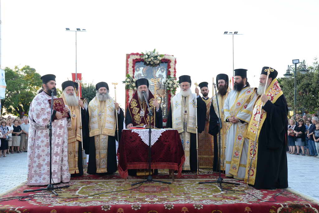Στήν Πλατεία Τριῶν Συμμάχων, ὃπου πρό 55 ἐτῶν ἐγένετο ἡ ὑποδοχή τῆς Τιμίας Κάρας, ἐτελέσθη Δοξολογία καί ὡμίλησε ὁ Σεβασμιώτατος Μητροπολίτης Πατρῶν κ.κ. Χρυσόστομος, ὁ ὁποῖος ἀνεφέρθη στήν μεγάλη δωρεά καί εὐλογία ἀπό τόν Θεό νά κατέχωμε τήν Ἀλήθεια καί νά ἀνήκωμε στήν Μία, Ἁγία, Καθολική καί Ἀποστολική Ἐκκλησία, στήν Πάτρα δέ νά ἒχωμε διδάσκαλό μας τόν Ἃγιο Ἀπόστολο Ἀνδρέα, τοῦ ὁποίου προσκυνοῦμε τόν τάφο, τήν ἁγία Κάρα του καί τόν σταυρό τοῦ μαρτυρίου του.
