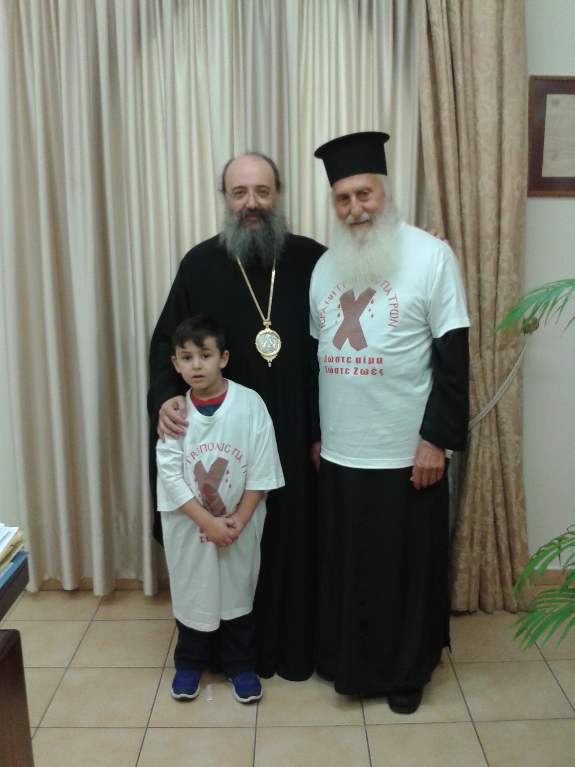Φορώντας μιά λευκή μπλούζα μέ τά χαρακτηριστικά τῆς Μητροπόλεως καί τό σῆμα τῆς αἱμοδοσίας, στεκόταν ἐπί ὧρες καί ἡμέρες μαζί μέ τους συνεργάτες του, στήν Πλατεία Γεωργίου Πατρῶν, ἐμπνέοντας τούς Πατρινούς καί ὂχι μόνο, νά προσφέρουν λίγο ἀπό τό αἷμα τους γιά νά σώσουν ζωές.