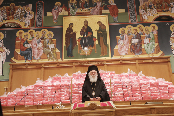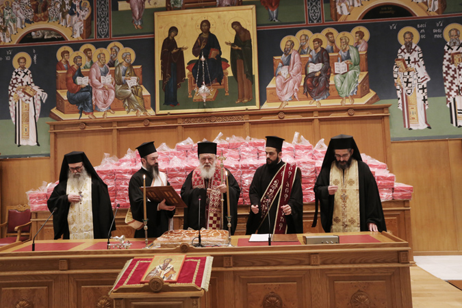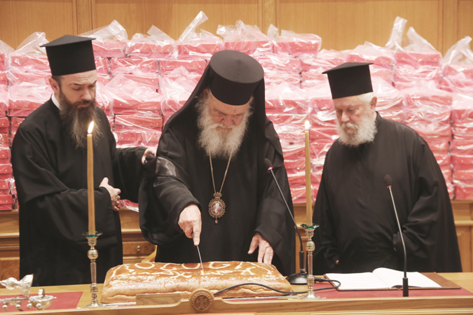 «Ο καινούργιος χρόνος να είναι ευλογημένος, δημιουργικός και ειρηνικός» ευχήθηκε ο Αρχιεπίσκοπος Αθηνών και πάσης Ελλάδος κ. Ιερώνυμος αμέσως μετά την κοπή της Πρωτοχρονιάτικης Βασιλόπιτας της Ιεράς Συνόδου της Εκκλησίας της Ελλάδος στην μεγάλη αίθουσα συνεδριάσεων της Ιεραρχίας της Εκκλησίας της Ελλάδος.