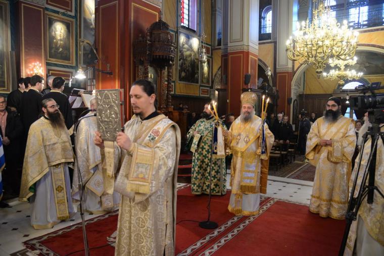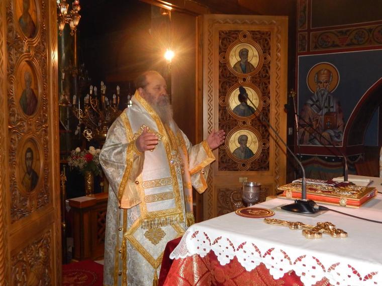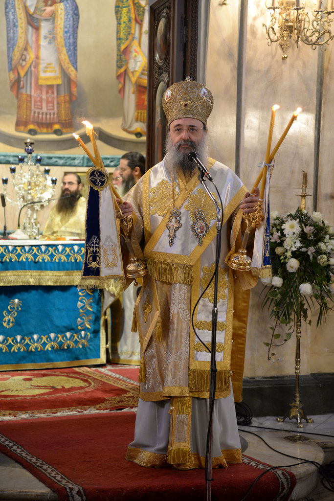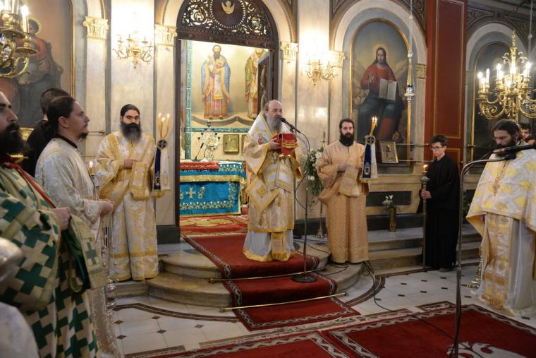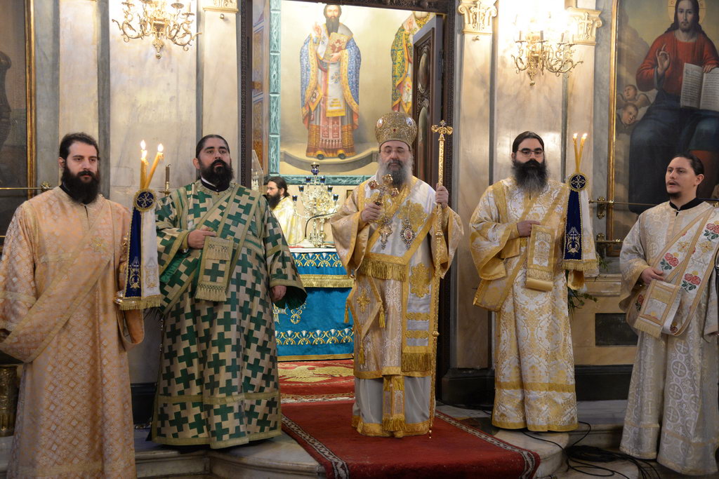 Ο Σεβασμιώτατος στο κήρυγμά του ανεφέρθη στην διαχρονικότητα της διδασκαλίας των Τριών Ιεραρχών, τους οποίους εχαρακτήρισε, προοδευτικούς, διορατικούς, μεγίστους θεολόγους, οι οποίοι μετέδωσαν εμπειρικά πλέον τα βιώματα τα δικά τους, ως προς την σχέση τους με τον Θεό, με τον άνθρωπο και τον κόσμο, αλλά και επαναστατικούς, αφού ξεπέρασαν τα όρια τα γνωστά του τότε κόσμου και ένωσαν τους δύο κόσμους, τον Ελληνικό και τον Χριστιανικό, εκχριστιανίζοντας τον Ελληνισμό καί εξελληνίζοντας τον Χριστιανισμό. Μέσα από αυτό το πνεύμα και η αποκεκαλυμμένη από τον Θεό αλήθεια, έγινε γνωστή στόν τότε κόσμο, αλλά και ο Ελληνισμός που έπνεε τα λοίσθια διεσώθη.
